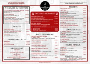 Menu carte du restaurant La Banche à chambéry